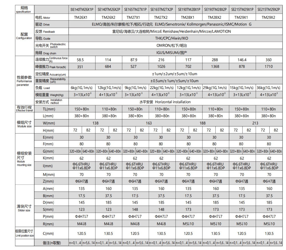 日東科技提供的直線電機(jī)模組,包含無(wú)鐵芯系列、鐵芯系列、音圈系列以及圓柱形系列等電機(jī)類型的模組,能夠應(yīng)用于各種精密場(chǎng)合,如視覺(jué)檢測(cè)、光學(xué)校準(zhǔn)、激光加工、定位檢測(cè)、工業(yè)機(jī)器人、精密機(jī)床、半導(dǎo)體生產(chǎn)設(shè)備等。在性能方面,這些模組采用光柵尺或磁柵等無(wú)接觸位置編碼器精準(zhǔn)定位,具有可靠性高、穩(wěn)定性高、反應(yīng)速度快、精度高等特點(diǎn),可實(shí)現(xiàn)單軸、多軸聯(lián)動(dòng)、龍門(mén)同步等快速靈活的驅(qū)動(dòng)控制,維護(hù)方便,使用壽命長(zhǎng);在外形方面,緊湊的模塊化設(shè)計(jì),節(jié)省了安裝空間,易于擴(kuò)展。