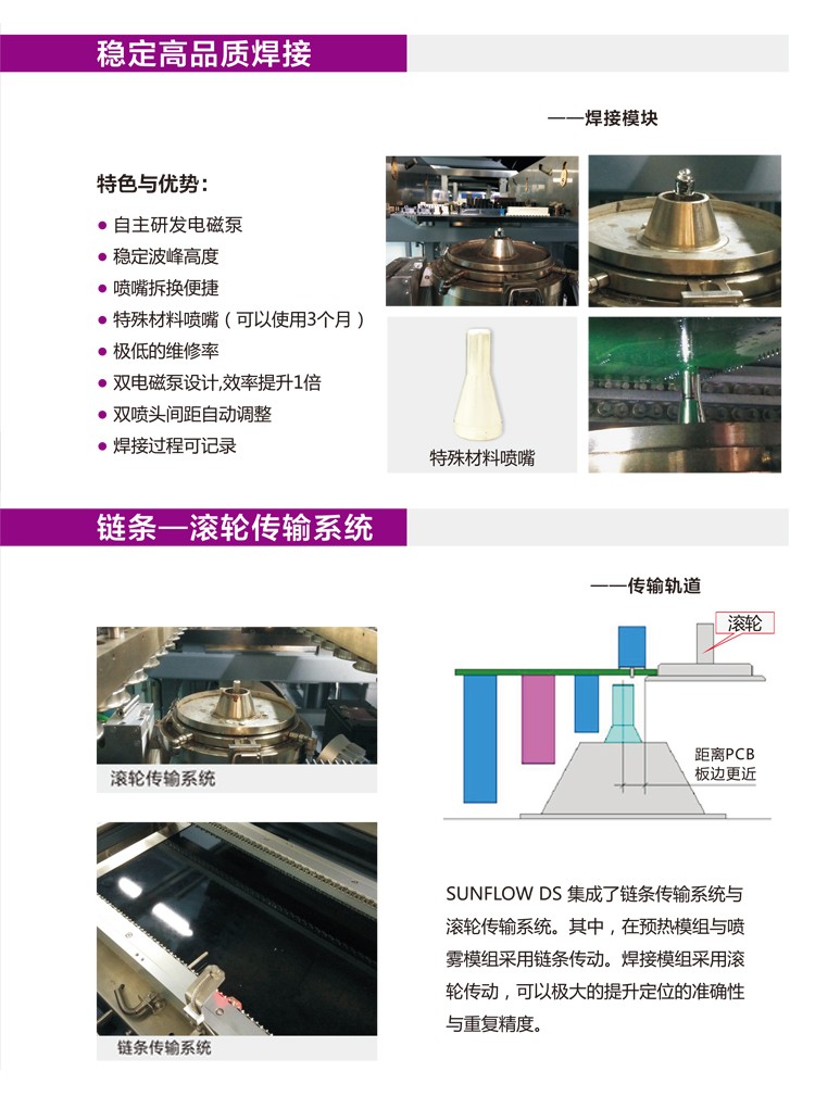 2.精確設(shè)置過的助焊劑噴涂,只施用于焊盤和插腳上,可以確保PCB板的高潔凈度,無須另外清潔。