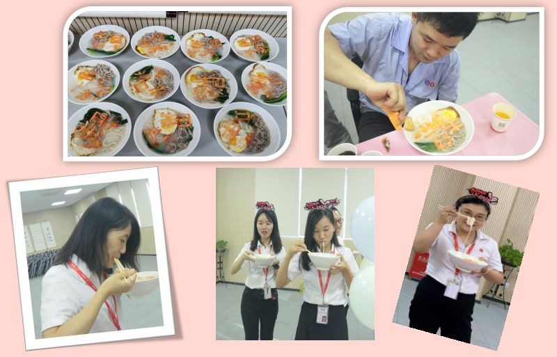 糖心荷包蛋、肉絲、胡蘿卜雕刻的“生日快樂“,組成這一碗代表公司對壽星們美好祝福的長壽面,一口下肚有沒有小時候的感覺!